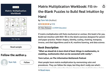 Section titled “Mastering Matrix Multiplication”If you want to commit yourself to mastering matrix multiplication, the paper version of my Matrix Multiplication Workbook was recently released on Amazon. Click this link to take a look.