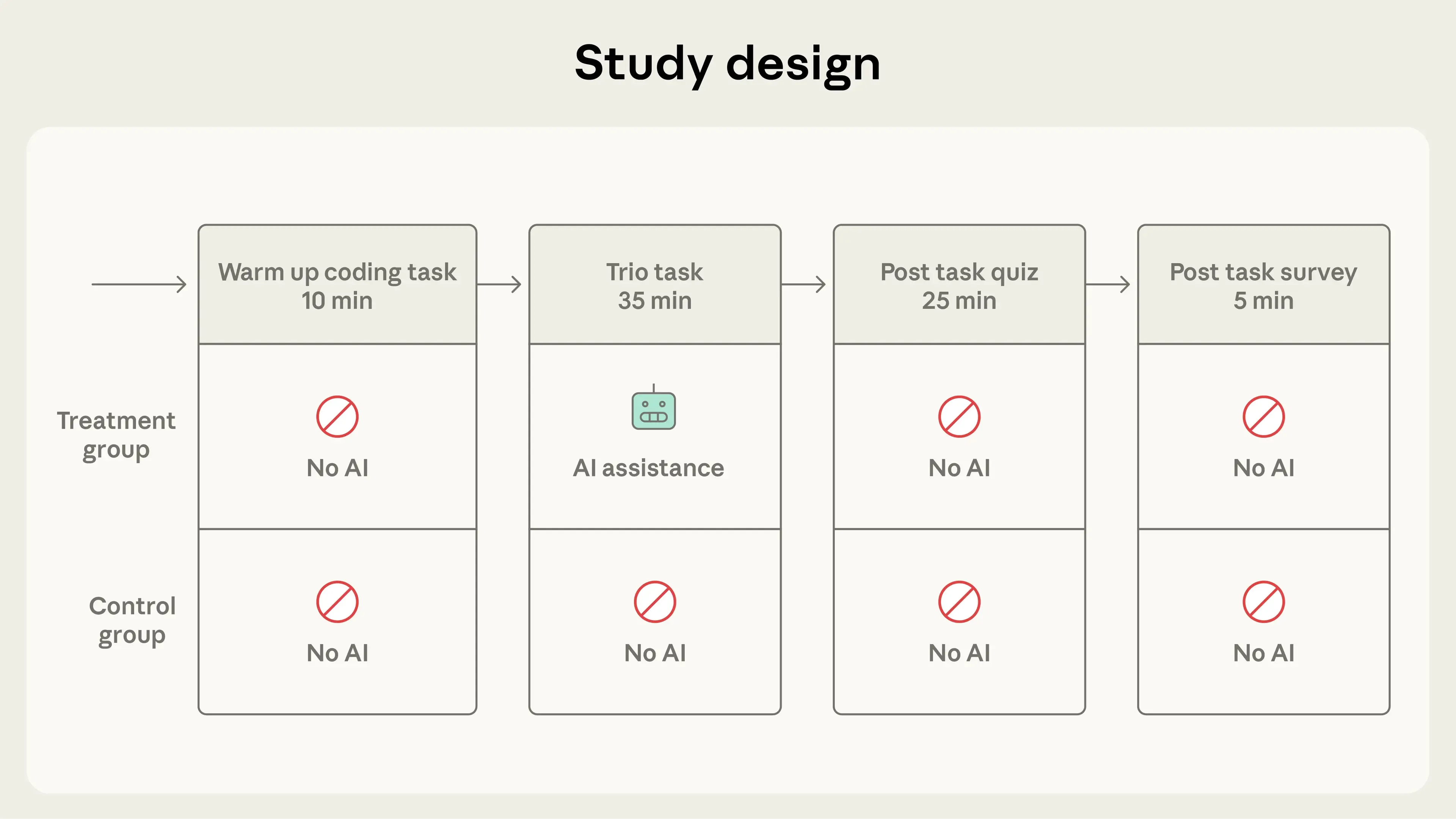 Section titled “Study Design”We recruited 52 (mostly junior) software engineers, each of whom had been using Python at least once a week for over a year. We also made sure they were at least somewhat familiar with AI coding assistance, and were unfamiliar with Trio, the Python library on which our tasks were based.