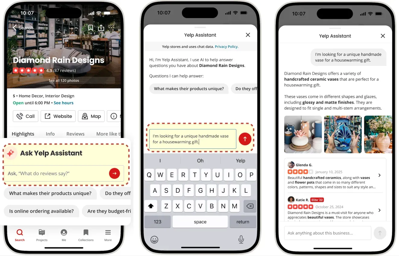 Figure 1: AI Assistant in Yelp business pages