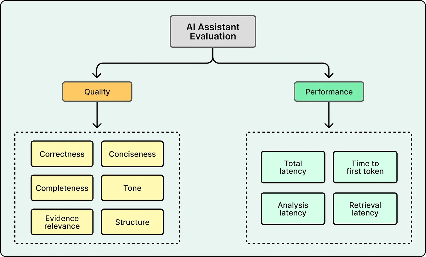 A robust evaluation system must separate quality into distinct dimensions that can be scored independently. Yelp defined six primary dimensions. They rely on an LLM-as-a-judge system where a specialized grader evaluates a single dimension using a strict rubric. For example, the Correctness grader reviews the answer against retrieved snippets and assigns a label like “Correct” or “Unverifiable”.