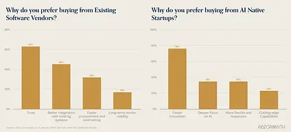 All this said, the prize is still up for grabs. While these are difficult to overcome (in addition to the far reaching distribution of an incumbent such as Microsoft), we believe there is an enormous opportunity for startups to chip away at these advantages. Platform shifts create openings and enterprises consistently say they value faster innovation, deeper AI focus, and greater flexibility paired with cutting edge capabilities that AI native startups bring.