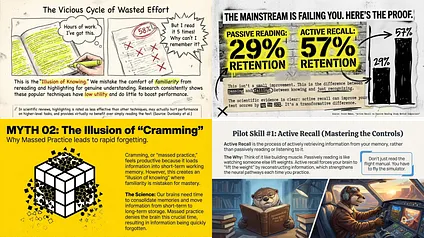 And since images are very flexible, I can play with style and approach. I had NotebookLM do a deep research report on science-backed methods of learning and then turn that into dense slide decks meant for reading in a variety of styles: one that looked hand-drawn, one that was inspired by 1980s punk, one that was “very dramatic and high contrast slides with a bright yellow background,” and, of course, one with an otter-on-a-plane theme.