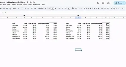 Section titled “Sorting Data”Take a look at this (made-up) table of DoorDash data by city, for example: