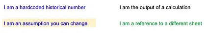 - A reference to data outside of the sheet (green font)
