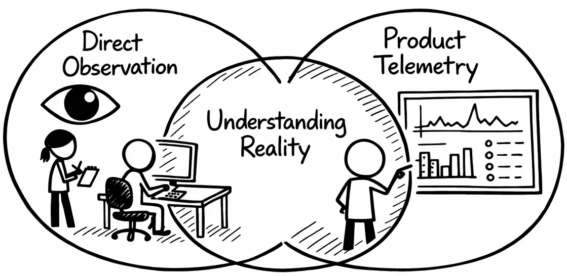 The combination of direct observation in context and product telemetry is what I would consider the best approach.