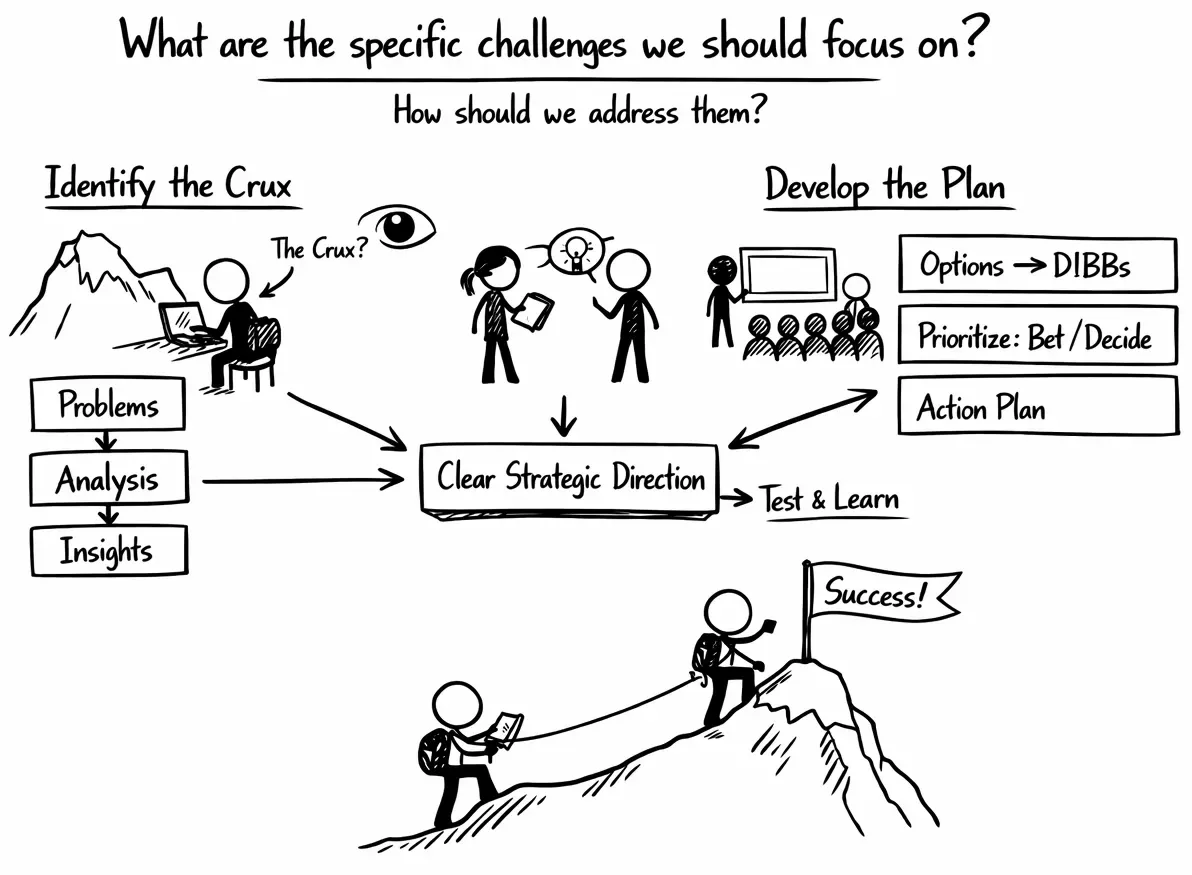 I like Richard Rumelt’s way of approaching strategy as problem-solving. See Good Strategy Bad Strategy and The Crux.