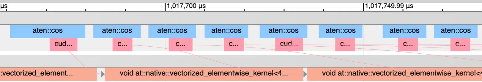 Finally, operator fusion leads to some surprising consequences. For one, a fused x.cos().cos() will take nearly the exact same time as calling x.cos() by itself. This is why activation functions are nearly all the same cost, despite gelu obviously consisting of many more operations than relu.