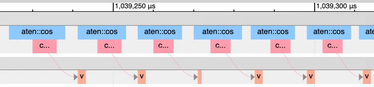 Another way is to use the PyTorch profiler. Here, the pink lines actually show how the CPU kernels match up with the GPU kernels.