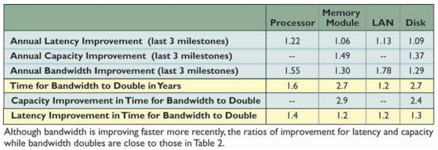 Exacerbating the difficulty of maximizing compute utilization is the rate at which compute grows compared to memory bandwidth. Take this table on CPU FLOPS doubling times vs. memory bandwidth doubling times