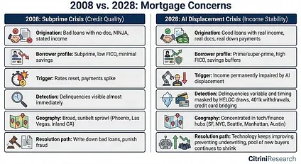 In 2008, the loans were bad on day one. In 2028, the loans were good on day one. The world just…changed after the loans were written. People borrowed against a future they can no longer afford to believe in.