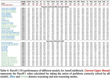 So what about other languages? Fortunately there’s AutoCodeBench, which doesn’t just test different models— it tests across 20 different programming languages. How’s that look? It looks like this: