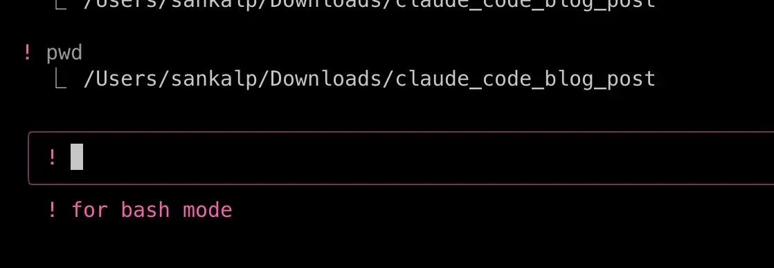 Section titled “Know Your Commands”I wondered for a while how can I just use bash mode without switching to a different terminal.