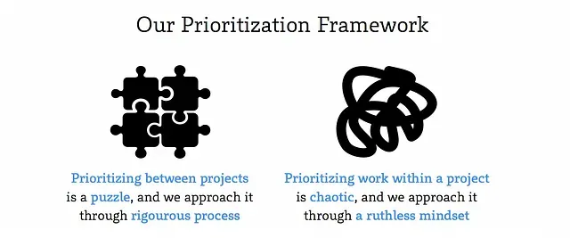 When prioritizing between projects, you have to make one big decision: ==what will my team invest in next? The right way to approach this turns out to be like completing a puzzle==. Apply a rigorous process to find all the pieces, and the answer is in how they all fit together.