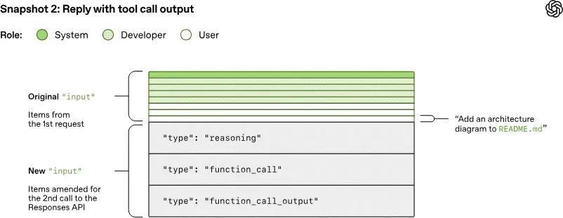 Section titled “Building the Prompt, Managing the Memory”When you type a request into Codex, your message becomes the bottom layer of a much larger prompt. Above it, the system stacks environment context like your current working directory and shell, the contents of any AGENTS.md files in your repository (these are project-specific instructions for the agent, covering things like coding conventions and which test commands to run), sandbox permission rules, developer instructions from configuration files, model-specific instructions, tool definitions, and a system message.