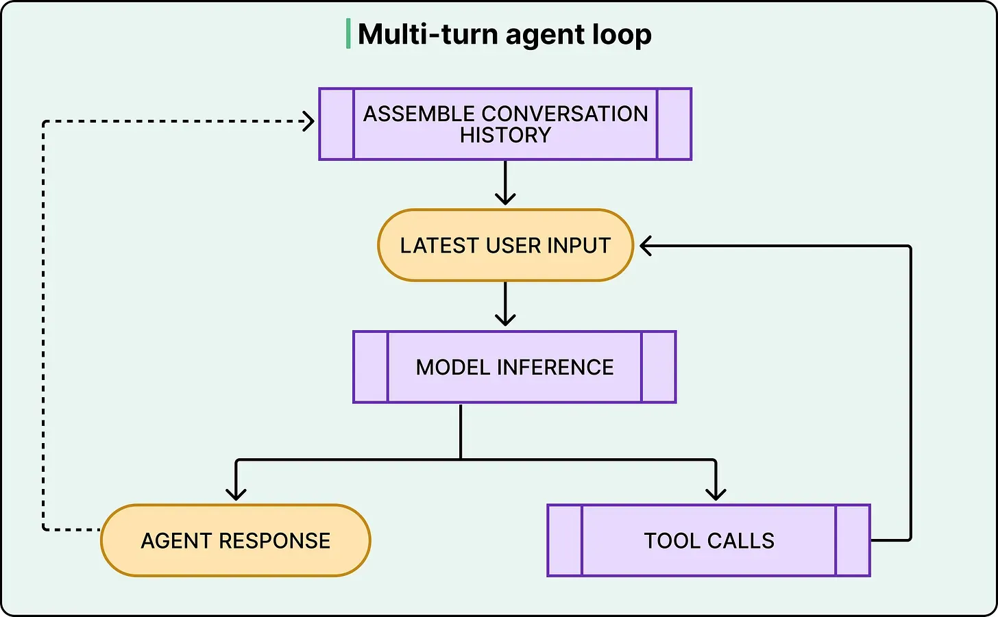 The agent loop also has an outer layer. Each cycle of inference and tool calls constitutes what OpenAI calls a “turn.” However, conversations don’t end after one turn. When the user sends a follow-up message, the entire history of previous turns, including all the tool calls and their outputs, gets included in the next prompt. This is where things get expensive, and where the next layer of complexity kicks in.