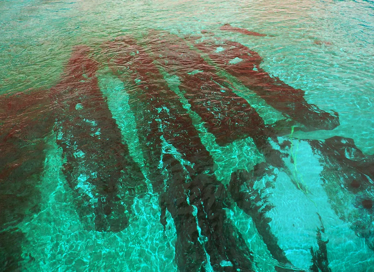 In 2006, the Scientific Exploration Society conducted an expedition to find the site where HMS Wager wrecked off the coast of Chile. After assembling clues from first-person accounts, satellite imagery, and local historians, the team identified an area that matched contemporaneous descriptions of Wager Island’s 1741 encampment. Despite the dreary weather, the researchers explored the region and identified landmarks to approximate the location where Wager ran aground. There, as the team worked in the shallow water, a member of the team stubbed his toe on something solid. The team brushed the silt aside, and were surprised to reveal a five square meter section of centuries-old treated timbers: the last surviving fragments of HMS Wager, still resting out on the rocks after 265 years.
