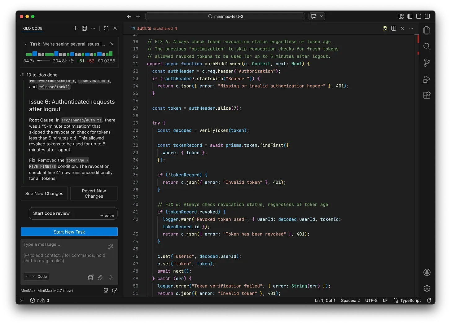 jwt.verify()handle expiration natively. MiniMax M2.7 fixed the broken manual comparison, which works but duplicates built-in functionality.