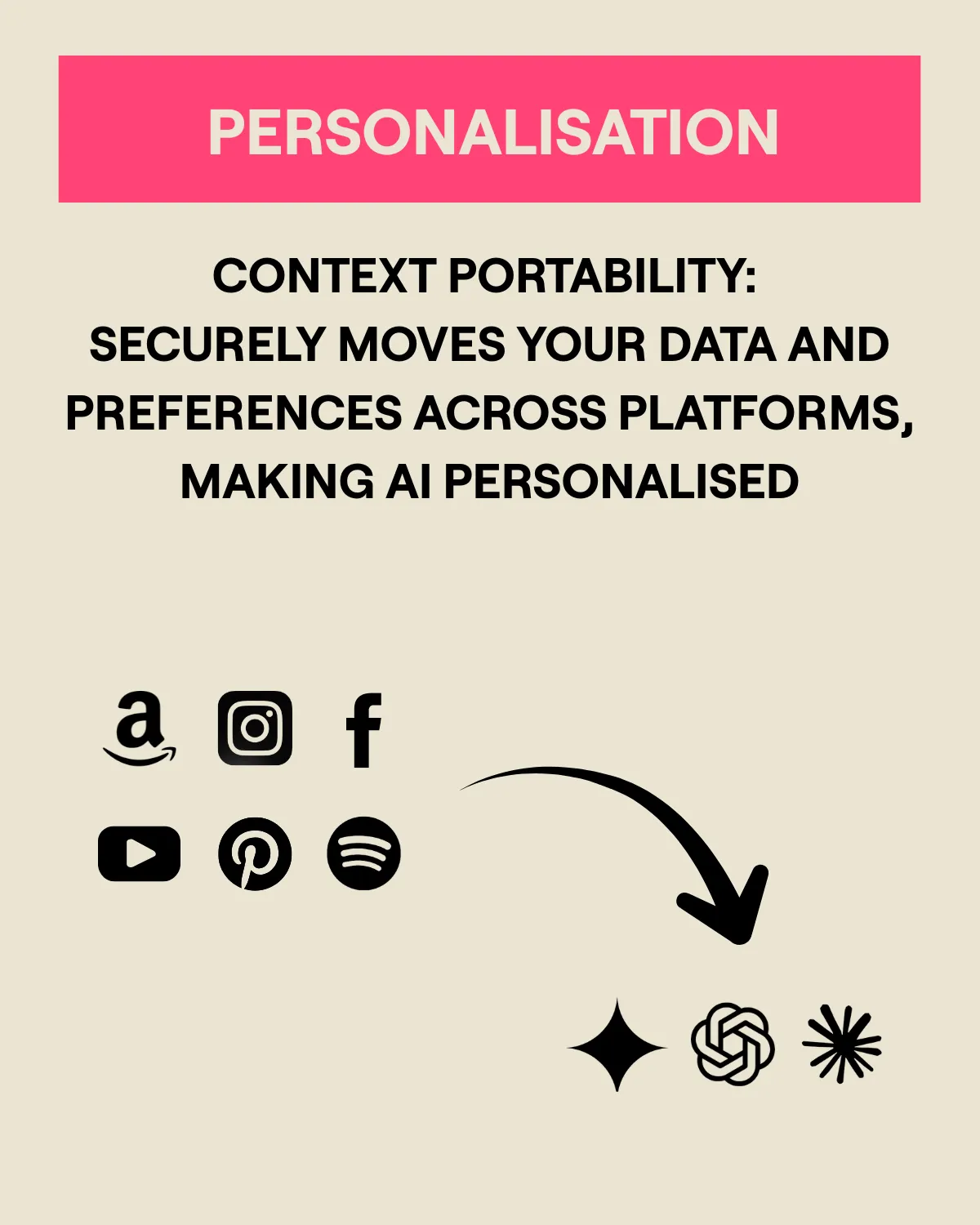 If you think about your own digital life, so much about you is scattered across different platforms. Anthropic’s Claude knows how you like to code, Google’s Gemini knows what kind of styles and aesthetic you prefer when generating images, ChatGPT knows how you like your LinkedIn posts to be written, YouTube knows what videos you’ve watched, Amazon knows what you’ve shopped, Instagram knows which places you’ve holidayed in… you get the picture. So if you wanted ChatGPT to recommend a holiday destination for you, it would be far more useful for it to know whether you’re a mountains or beach kind of person (based on your Instagram pictures) or your hobbies and interests (based on your search history, YouTube videos, Instagram posts and so on).