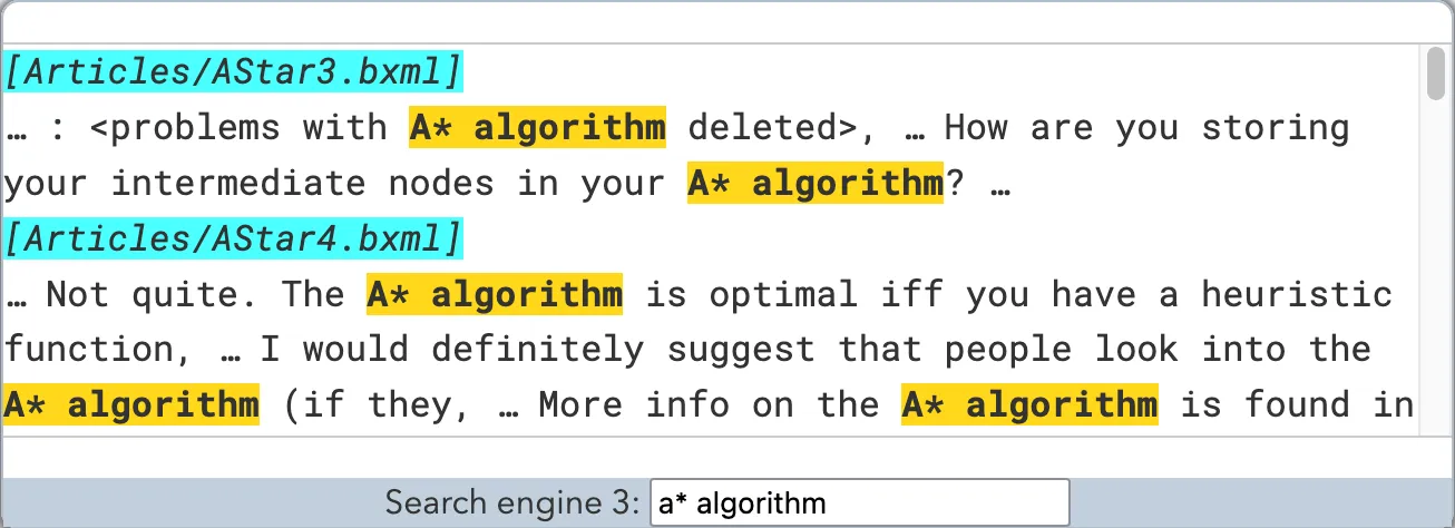 But we’re showing the first N matching documents. This is like Ctrl + F over all documents. A “search engine” should show the best documents instead of the first in some arbitrary order. Let’s attempt that in the next post.
