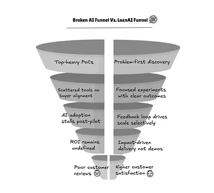 The underlying issue? Lack of a seed approach, focus, and failure to follow through. With no clear success criteria and production pathways, AI becomes a lab experiment loop.