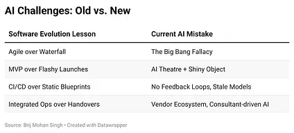 Section titled “Going All In With AI: Not the Best Call Now”What the AI world needs now is the equivalent of Agile and DevOps: a mindset built for adaptive delivery. A ‘Lean ’ approach.