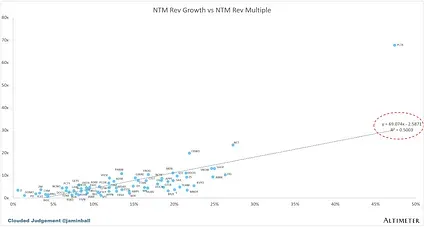 Scatter Plot of EV / NTM Rev Multiple vs NTM Rev Growth