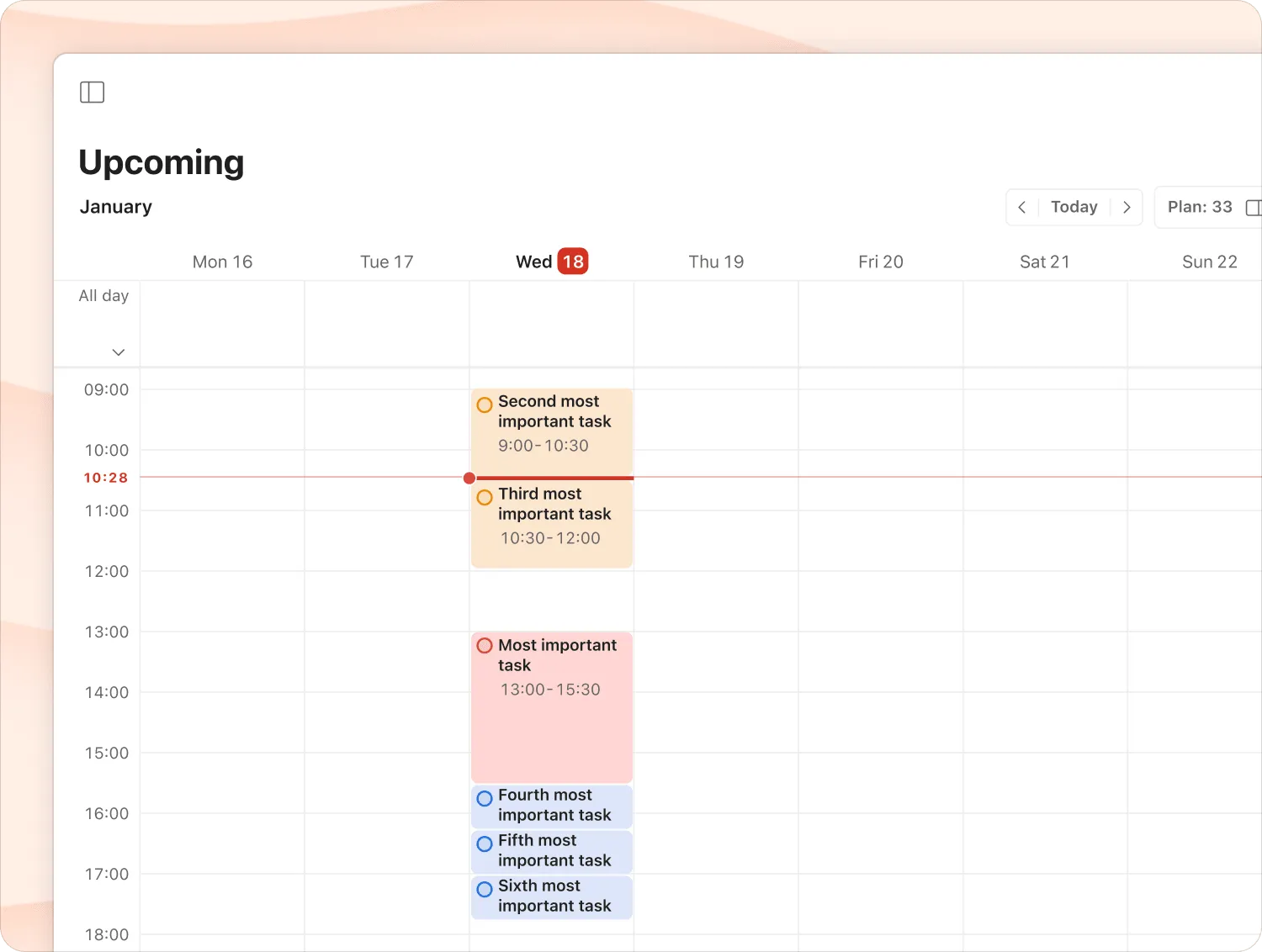 Section titled “Pairing with time Blocking”The Ivy Lee method tells you what to work on and in what order. Time blocking tells you when. For me, combining the two is the perfect time management tool.