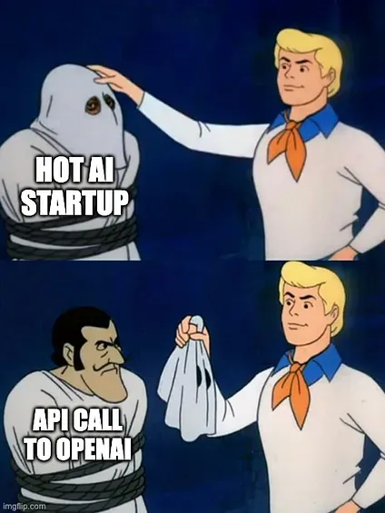 AI Wrapper Meme: An API call to OpenAI under the hood.
